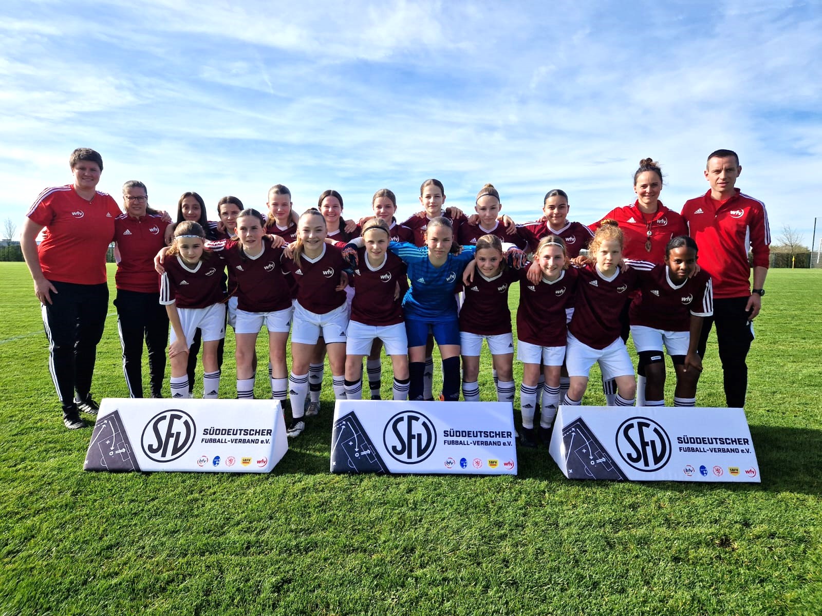 Ab den U16-Juniorinnen werden zum ersten Mal zwei Jahrgänge in einer Landesauswahl gemeinsam gefördert. Dabei greift ab der U15-Altersstufe für DFB-Spielerinnen das Spitzenförderkonzept des wfv während sich der ältere Jahrgang bereits auf den Aktiven-Bereich vorbereitet. Nicht zuletzt deshalb ist die Kaderstruktur hier sehr heterogen. Inhaltlich geht es in der U16-Altersstufe darum, die beiden Jahrgänge zusammen zu führen und sie individual-, gruppen- und mannschaftstaktisch weiterzubilden. Auch in dieser Altersstufe haben die Spielerinnen die Möglichkeit sich auf regionaler und nationaler Ebene (DFB U16-Juniorinnen-Länderpokal / Sichtungsturnier) zu messen.