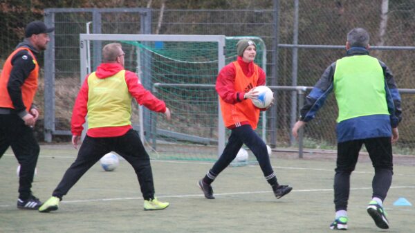 Im theoretischen Teil rund ums Knie mit Meniskus, Kreuzbänder und Sehnen konnten die Anwesenden Teilnehmer*innen auch am mitgebrachten Knie-Modell und an einigen Bildern sehen was hier alles passieren kann. Ein Großteil der Schulung befasste sich anschließend im praxisteil der an 13 Stationen zeigen sollte, wie man präventiv dafür sorgen kann, dass nicht so viel passiert bzw. der Schaden sich in Grenzen hält. Ganz ausschließen lässt sich selbstverständlich nicht, eine Einwirkung des Gegenspielers kann ja nicht ausgeschlossen werden. Dennoch kann man durch gezieltes Training dafür sorgen, dass Muskeln und Bänder sowie der ganze Körper auf bestimmte Beanspruchung gut reagieren wird. Nach einer ausführlichen Vorstellung aller Stationen durften sich die Teilnehmer*innen an allen auch selbst ausprobieren, was sehr gut ankam. Zum Abschluss durften die in zwei Gruppen aufgeteilten Teilnehmer*innen jeweils ein Programm fürs Warm-Up und Cool-down ausarbeiten und präsentieren.