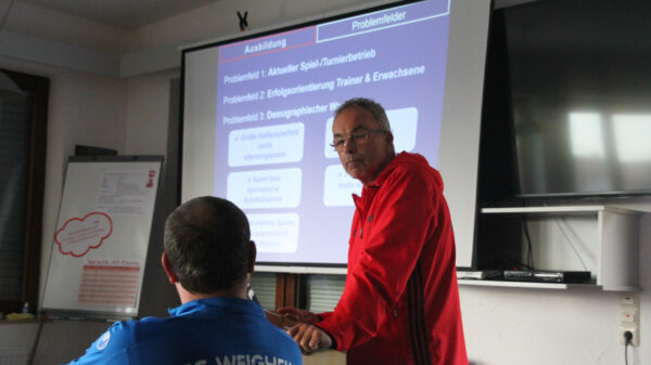 Der Lehrgang begann am Freitagnachmittag mit der Begrüßung durch den Schulungsleiter Georg Müller, der die Anwesenden über den Lehrgang und den organisatorischen Ablauf sowie die Gegebenheiten in Villingendorf informierte. In der ersten Theorieeinheit ging Dietmar Anders auf die Ausbildungsansätze im Kinderfußball „wir haben Mut“, „wir bilden aus“, „wir sind (d)ein Team“ und „wir sind Vorbilder“ ein. Im weiteren Verlauf wird jeweils in der Theorie die Vorbereitung auf die Nachfolgende Praxiseinheit erarbeitet und anschließend auf dem Platz umgesetzt.