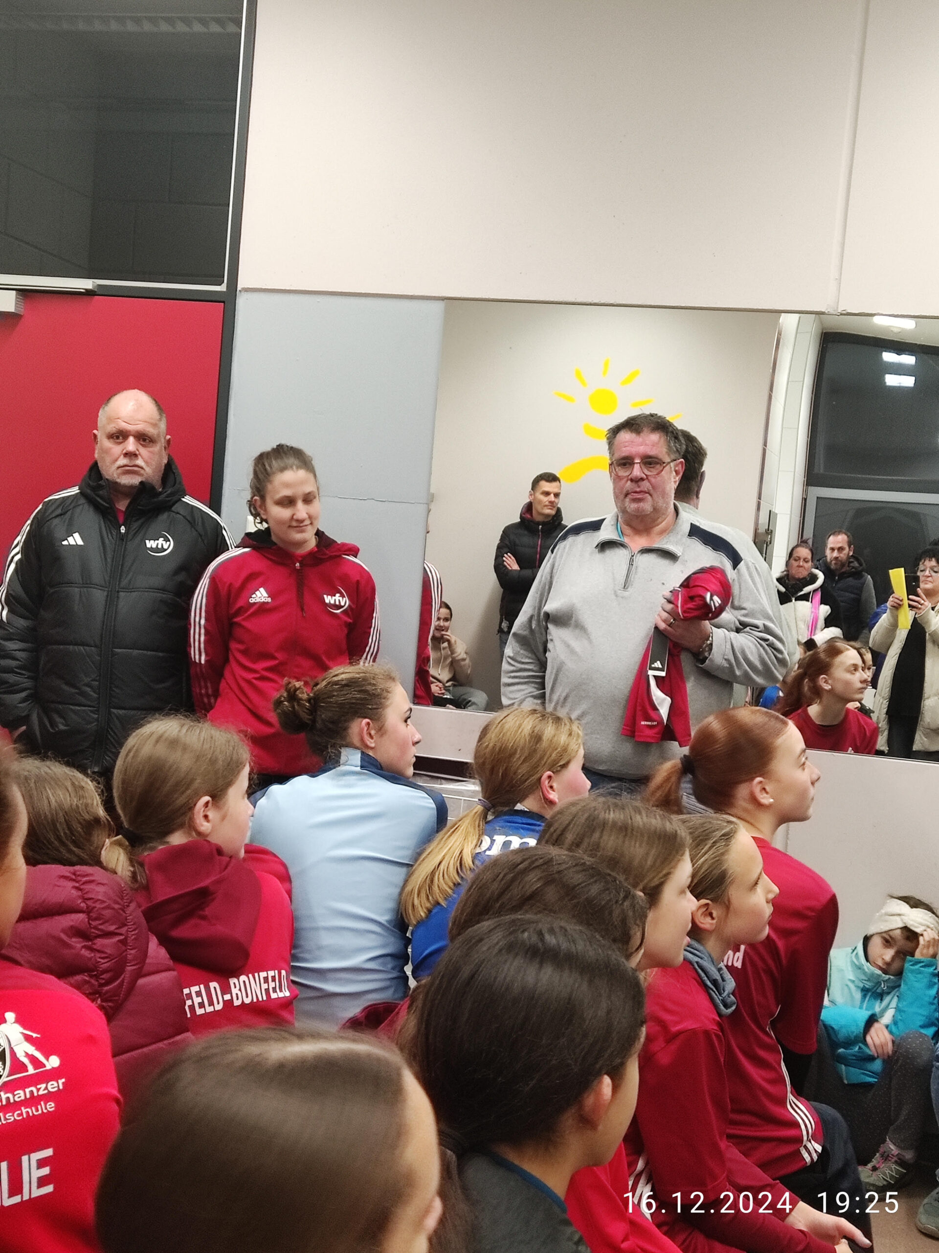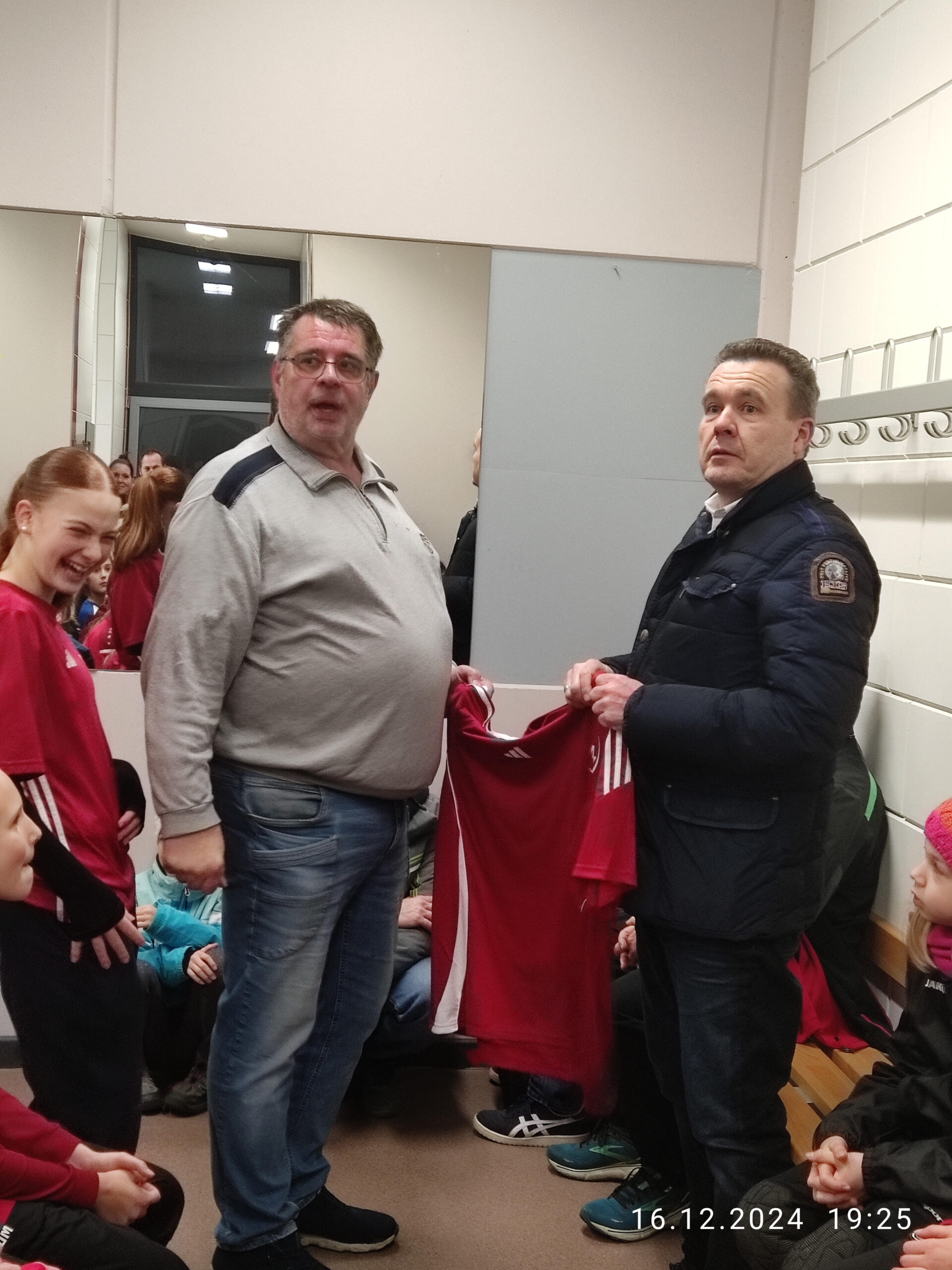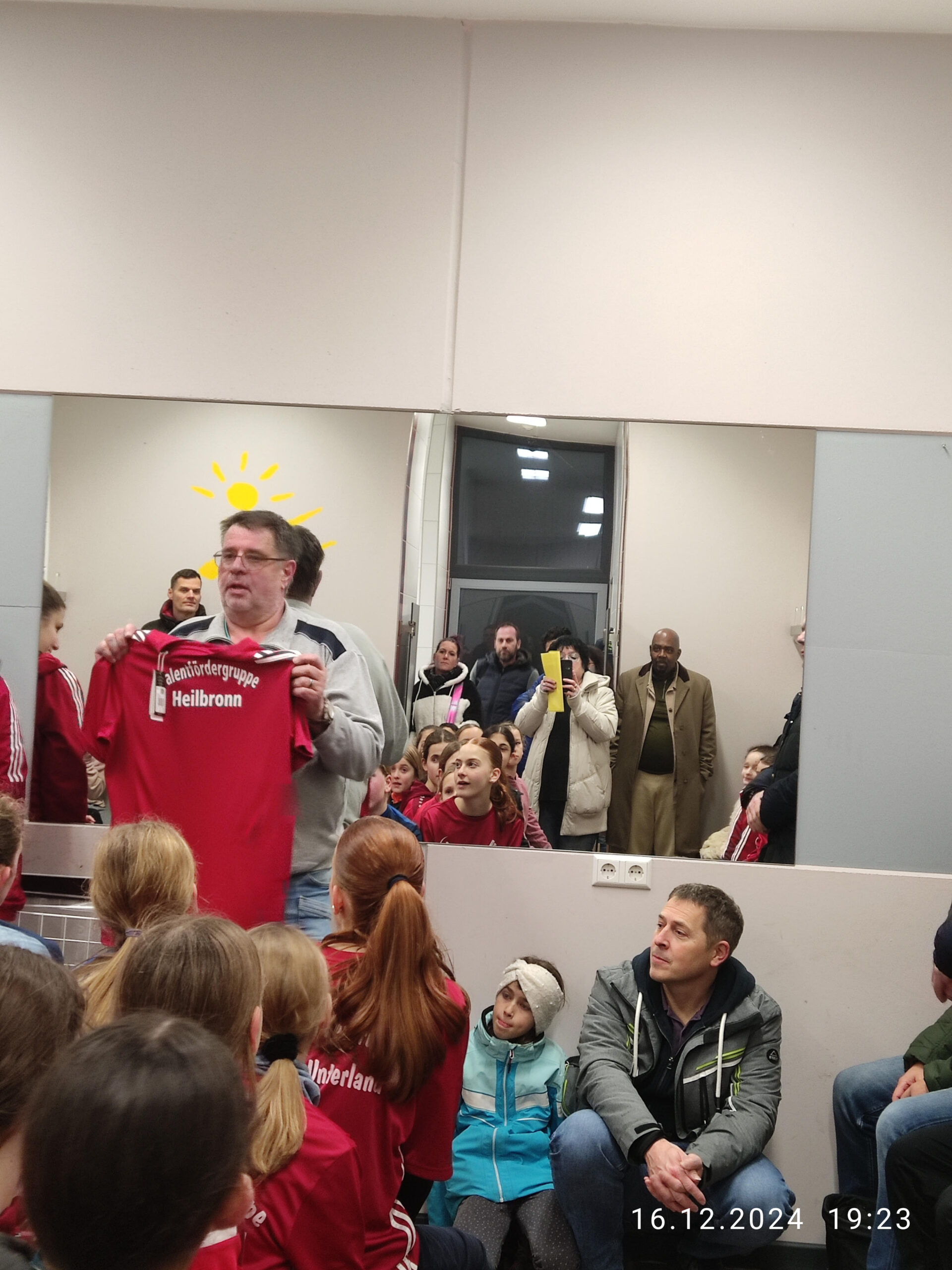 Nach dem Training am Montag, 16.12.24 gab es für die Mädels der Talentfördergruppe Heilbronn eine kleine Weihnachtsüberraschung. Herr Frank Reimold von der Fa. TQS Industrieservice Gmbh aus Neckarsulm und Bezirksvorsitzender Hartmut Megerle hatten für die Mädels neue T-Shirts dabei. Die T-Shirts wurden von TQS Industrieservice Gmbh gesponsert.