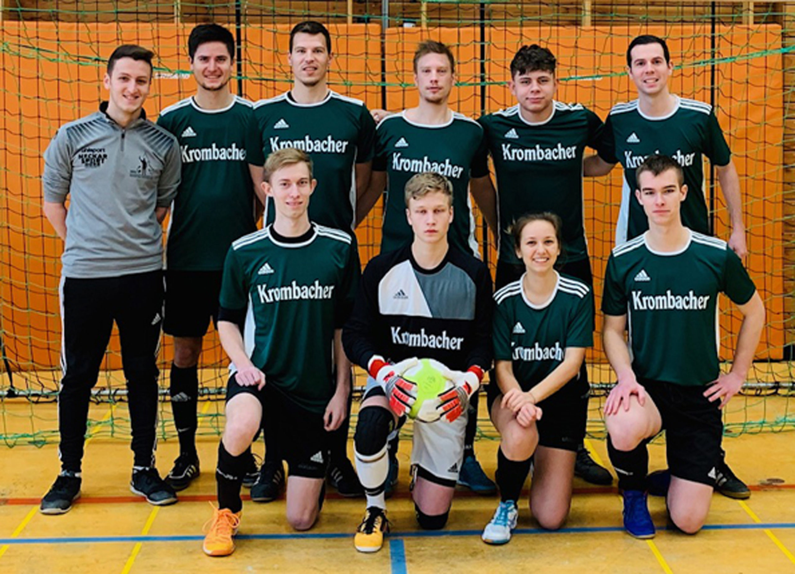 Ganz schon Feuer war drin beim Turnier der Schiedsrichter aus ganz Württemberg am ersten Februar-Wochenende in der Balinger Sparkassen-Arena, denn sogar die Feuerwehr musste anrücken. Spieler und Zuschauer mussten zügig die Hallen verlassen, Feuerwehr und Polizei waren mit mehreren Einsatzfahrzeugen vor Ort. Entwarnung gab es nach gut 40 Minuten, der „Brand“ stellte sich als Fehlalarm wegen eines Backofens in der Küche heraus, so dass das Turnier dann fortgesetzt werden konnte. Mittendrin war auch ein Team der Schiedsrichtergruppe Nördlicher Schwarzwald, die, angeführt von ihrem Obmann Markus Teufel, in den von Philipp Baur organisierten nagelneuen Trikots sehr ordentlichen Fußball spielte, allerdings knapp das Halbfinale wegen eines fehlenden Punktes verpasste. Und das, weil sich das Team als ein Vorbild in Fairplay erwies, dafür allerdings bitter bestraft wurde. Insgesamt gingen 18 Mannschaften aus dem WFV-Gebiet an den Start des von der Schiedsrichtergruppe Zollern ausgerichteten Turniers. Für die Nordschwarzwälder, die mit einer Schiedsrichterin und neun männlichen Kollegen und einigen Fans in Balingen vertreten waren, begann das Turnier gut, denn im ersten Spiel konnte gleich ein 3:1-Sieg gegen die Gruppe Tübingen eingefahren werden. Die Euphorie wurde dann allerdings im zweiten Spiel etwas gebremst, als die Truppe um Markus Teufel sich der Schiedsrichtergruppe Böblingen mit 1:3 geschlagen geben musste. Nachdem man dann gegen die Kameraden aus Esslingen mit einem 4:1-Sieg weitere drei Punkte eingefahren hat und gegen die Schiedsrichtergruppe Nürtingen schon mit 2:0 führte, schien der Weg ins Halbfinale frei zu sein. Dann allerdings wurde das Fairplay dem Team um Markus Teufel zum Verhängnis. Bei der Schiedsrichtergruppe Nürtingen, die ohne Auswechselspieler angereist war, verletzte sich ein Spieler und so gerieten sie in Unterzahl. Weshalb die Nordschwarzwälder freiwillig auch einen Spieler vom Feld nahmen und nicht mehr mit ihren besten Akteuren spielten. Das nutzte Nürtingen zu einem knappen 3:2-Sieg. Im letzten Spiel trennte man sich 1:1 vom späteren Turniersieger Waiblingen, der die Gruppe Kocher/Jagst im Finale 3:1 besiegte. Am Ende fehlte den Nordschwarzwäldern ein Punkt zum Einzug ins Halbfinale. Das Bild zeigt, stehend von links, Robin Bosch, Daniel Pfeffer, Sebastian Baur, Marco Seidel, Martin Ulrich und Obmann Markus Teufel. Vorne knien Moritz Hösle, Luca Storz, Malin Göbel und Mirko Harter.