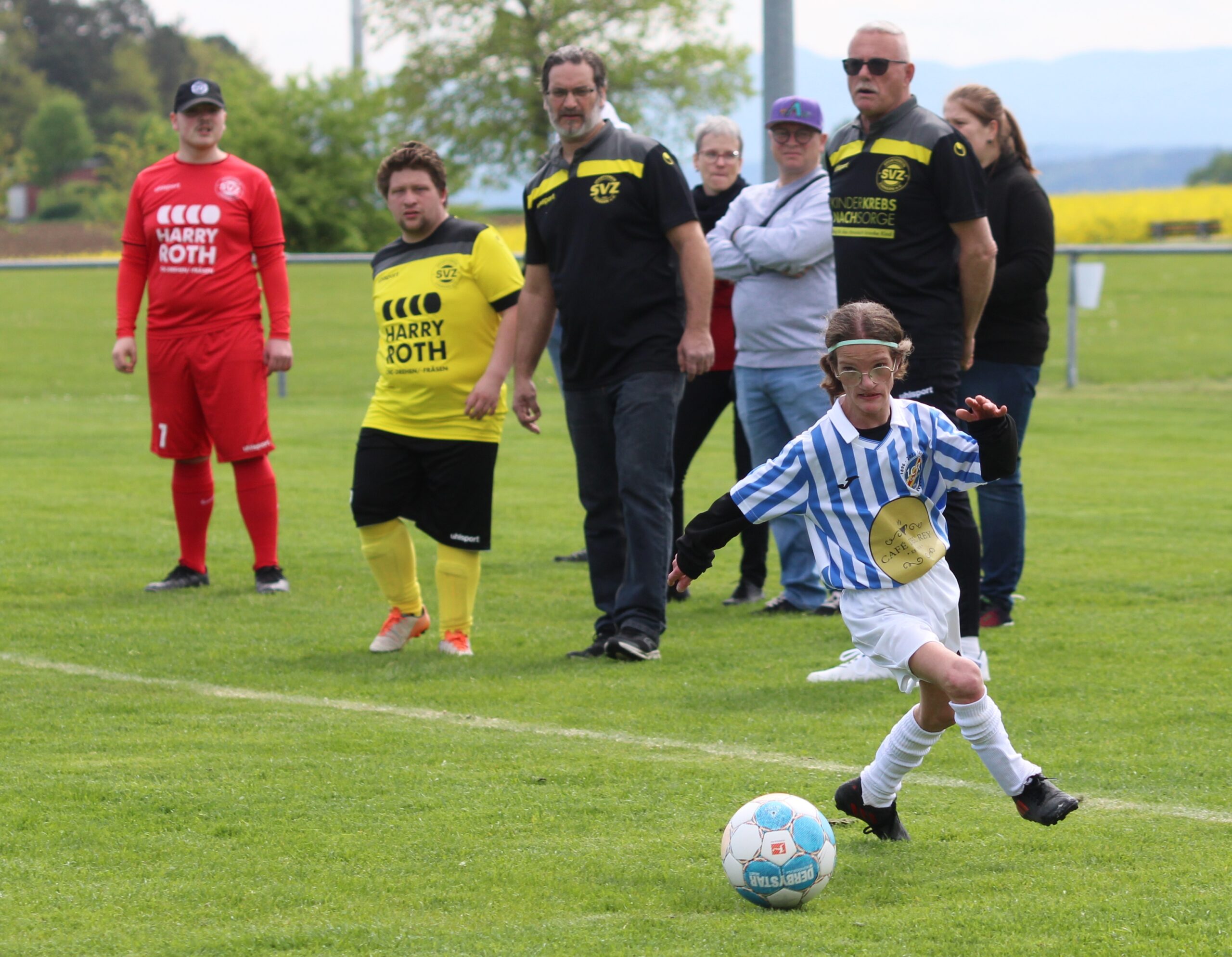 Wenn wir schon bei den Gewinnern sind: Ein absolutes Sahnehäubchen am Turniertag war das Einlagespiel, in dem sich die Lebenshilfe Horb/Sulz und eine Auswahl der restlichen Turniermannschaften gegenüberstanden. Bemerkenswert: Bei dem Spiel war mit dem Bergfelder Michael Leopold ein Schiedsrichter im Einsatz, der ebenfalls ein Handcap hat und an diesem Tag sein erstes Spiel überhaupt leiten durfte. Michael war sowohl im Vorspiel beim 7:1 der Lebenshilfemannschaft fehlerfrei im Einsatz, wie auch beim kurzfristig eingefügten Rückspiel, dass 4:1 endete.