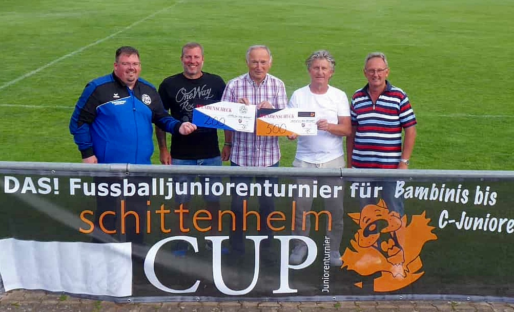 Am ersten Juli-Wochenende wurden auf dem Sportgelände des TSV Öschelbronn verschiedene Jugendturniere um den Schittenhelm-Cup ausgespielt. Wie bereits schon berichtet, fand auch eine Spendenaktion für Fußballvereine im Ahrtal statt. Über die 2 Turniertage wurde der gesamte Erlös des Eisverkaufs von der Firma Schittenhelm gespendet. Dies war eine Summe von 500 Euro. Es gab weitere Spenden in Höhe von 200 Euro. Karl Schäfer möchte sich dafür bedanken. So kann man den betroffenen Vereinen immer wieder ein wenig helfen. Ein weiterer Die C-Junioren der JSG Herresbach wurden bei dem Turnier trotz guter Leistungen letzter. Das B-Juniorenspiel in Nebringen gewann die SG Gäufelden/Bondorf gegen die JSG Adenau mit 4:2 Toren. Am letzten Donnerstag wurden auf dem Sportgelände in Öschelbronn zwei Spendenschecks überreicht.