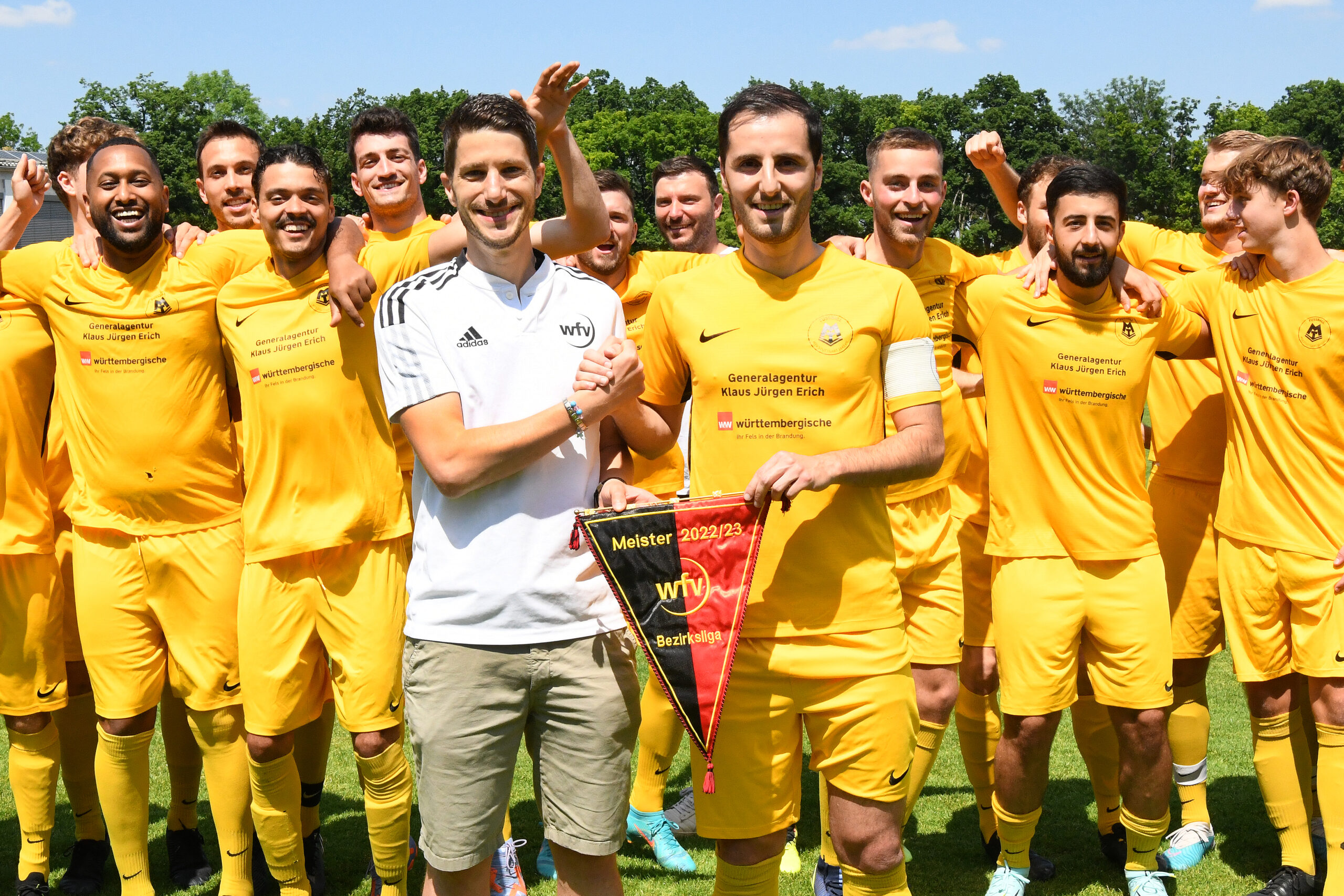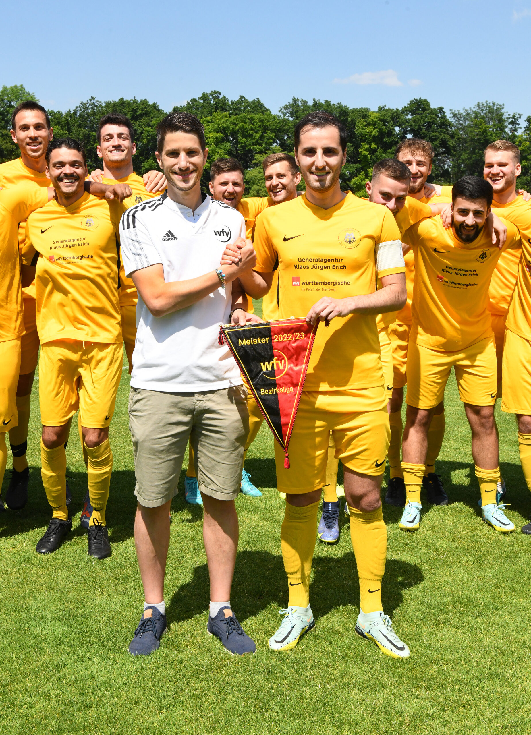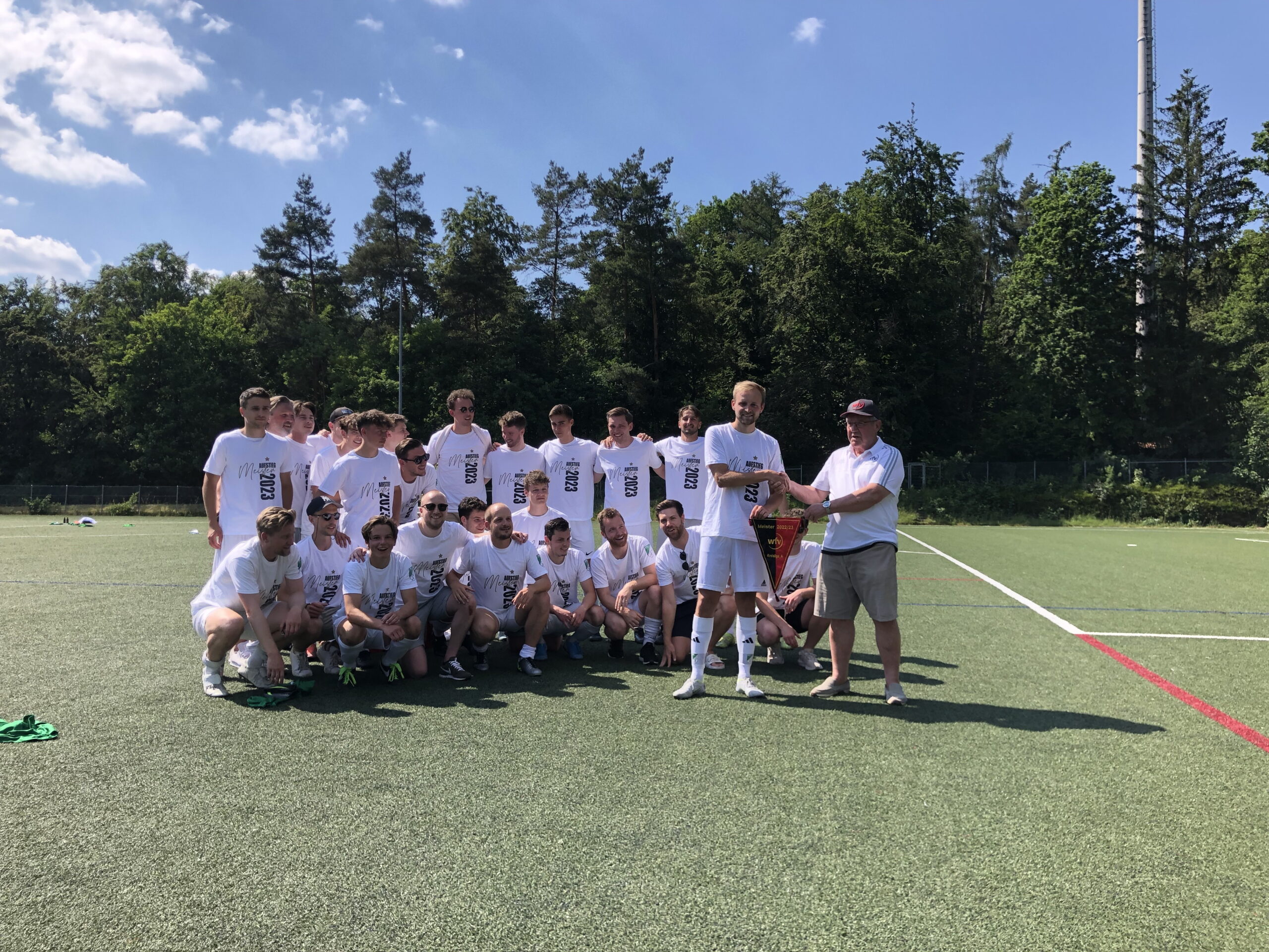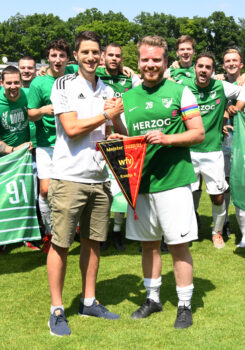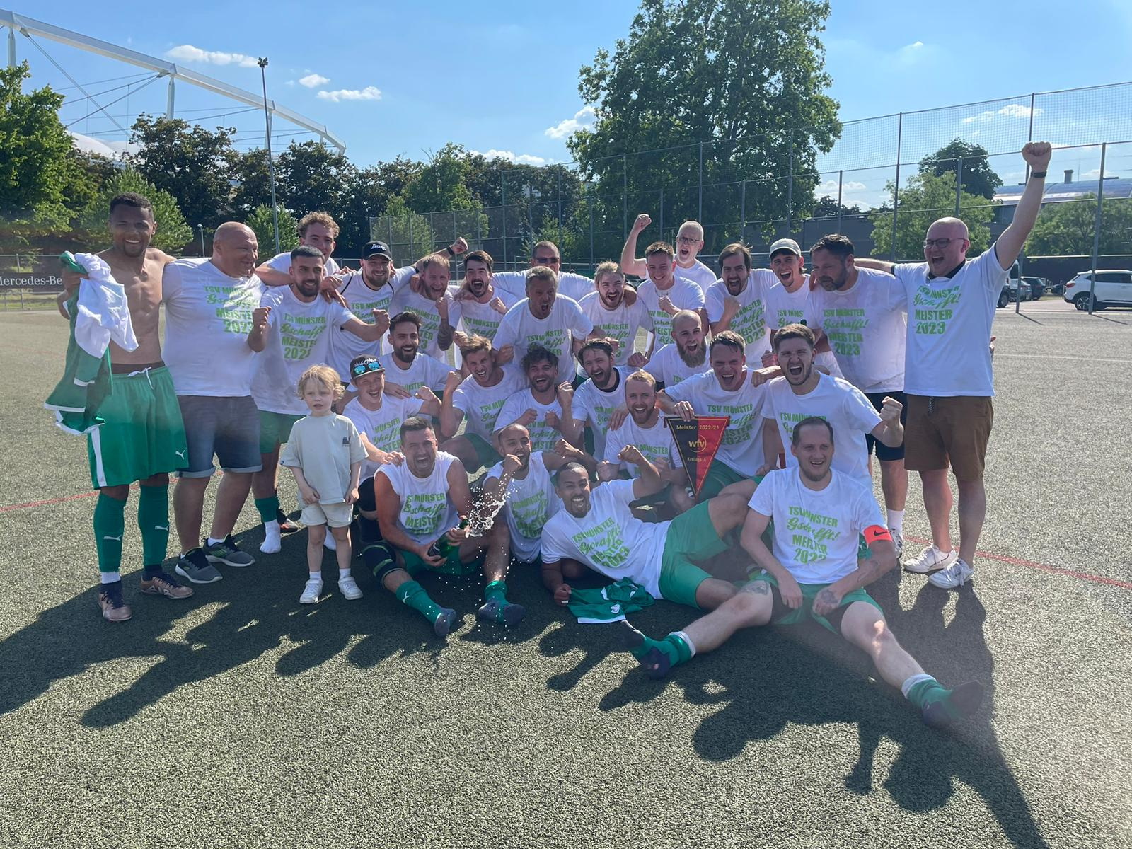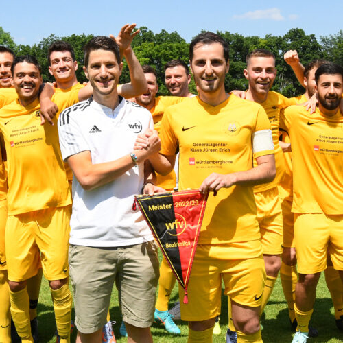 Meisterjubel auch bei der TSVgg Stuttgart-Münster: Eine lange Durststrecke – abgestiegen aus der Bezirksliga waren die Kicker vom Viadukt nach der Spielzeit 2017/18 – hat am 11. Juni 2023 ein Ende gefunden. 22 Siege, 2 Remis und gerade mal 4 Niederlagen bescherten 68 Punkte. Und damit die Rückkehr in die höchste Spielklasse im Bezirk. Die Grün-Weißen aus Münster gaben dem ASV Botnang (64 Zähler) sowie dem PSV Stuttgart und dem TV 89 Zuffenhausen (beide 63) das Nachsehen.