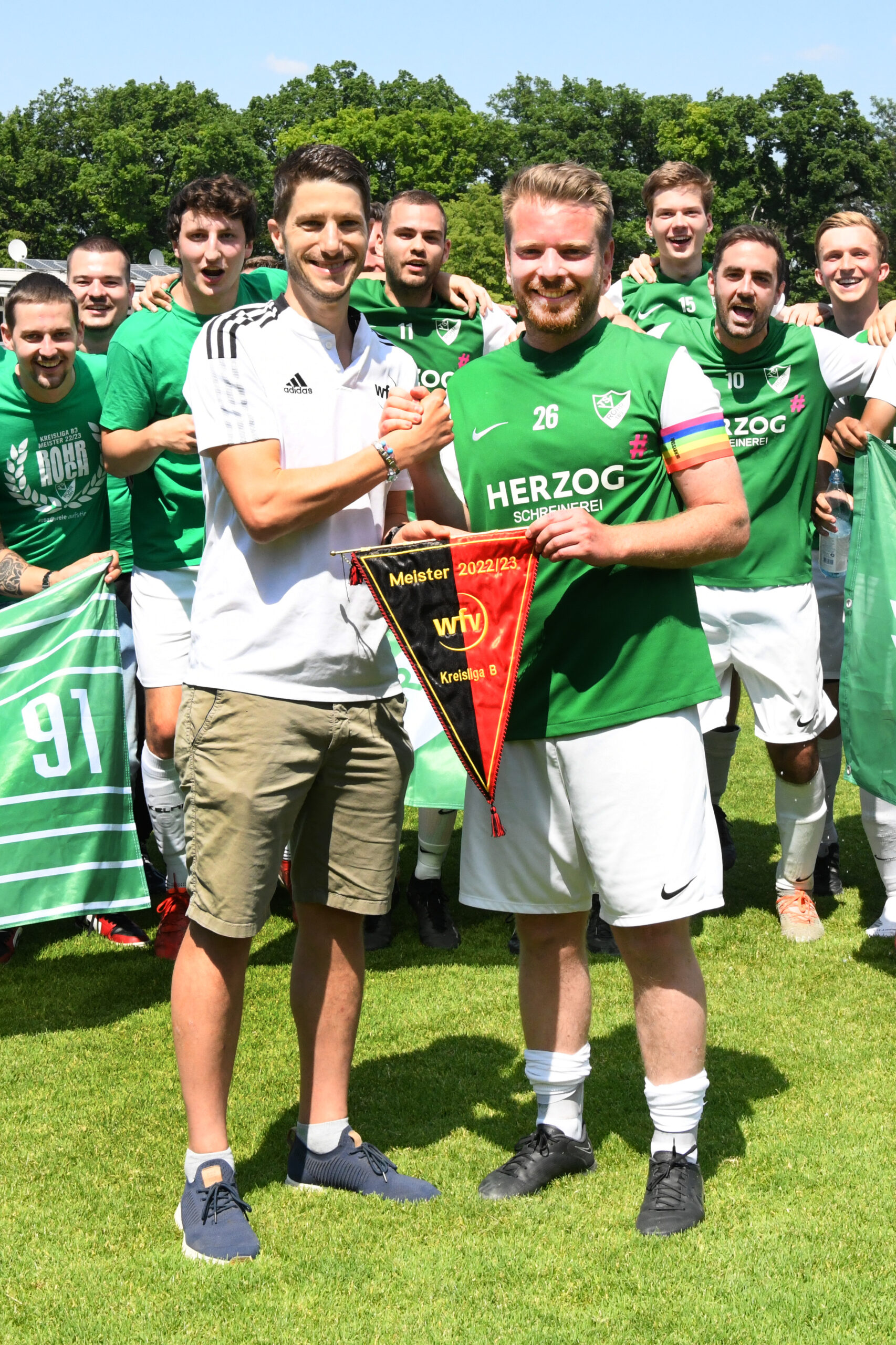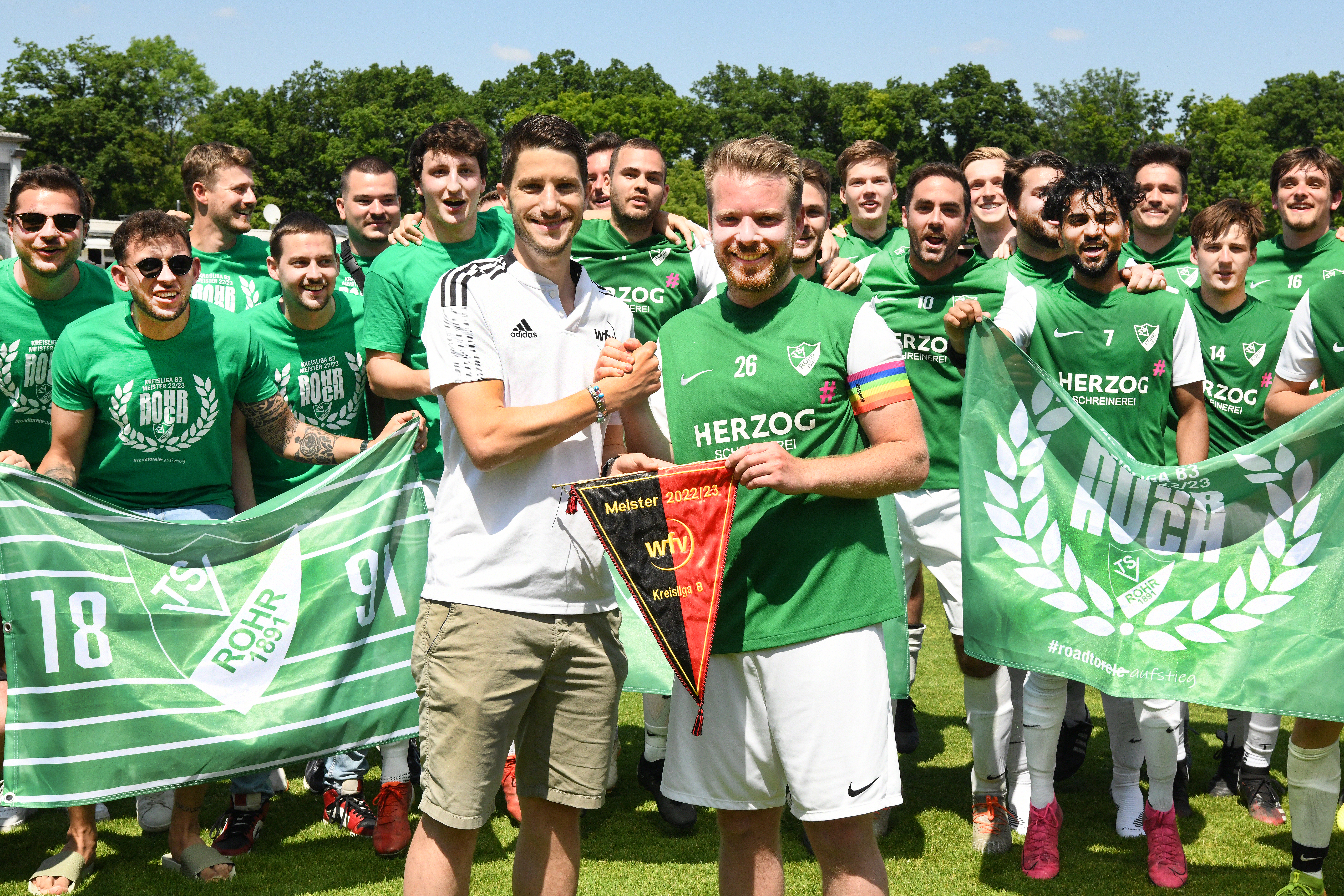 Zu den Teams, welche am sonnigen Juni-Wochenende ihre Meisterwimpel bekamen, zählte auch der TSV Rohr II. Auch die Bezirksliga-Reserve legte eine top Spielzeit hin, schaffte mit der Saisonbilanz von 101:28 Treffern eine stolze Torezahl. Das Nachsehen in der Kreisliga B, Staffel 3, hatte die Spvgg. Cannstatt II, die am Ende fünf Punkte weniger auf ihrem Konto hatte.