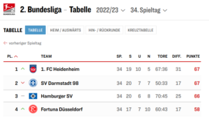 1. FC Heidenheim steigt als Meister der 2. Bundesliga in die 1. Liga auf