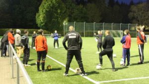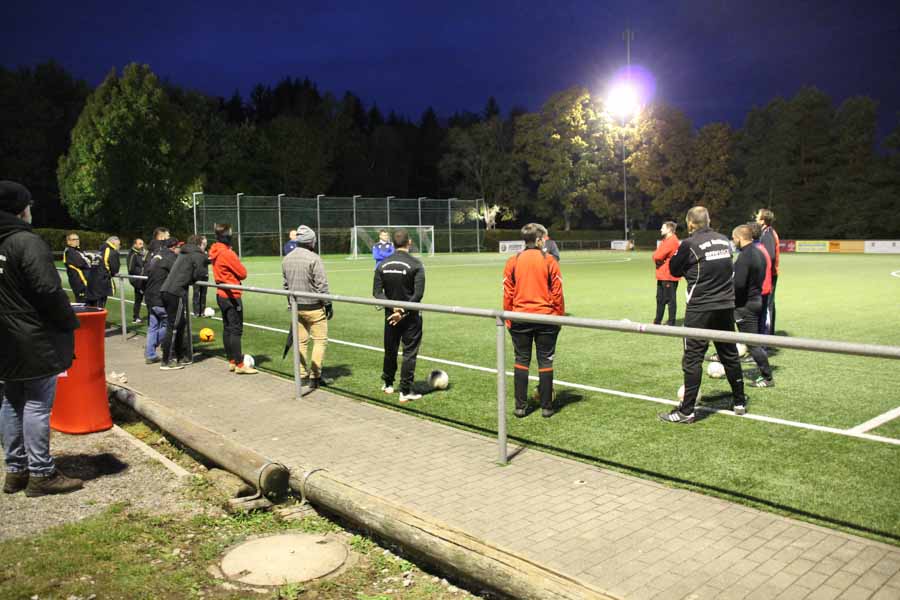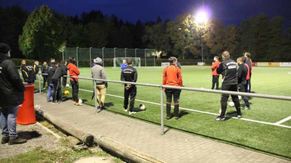 In der Praxis wurde nun dieser theoretische Inhalt durch Dietmar Anderes vom WFV-Trainerlehrstab mit Beispielen auf dem Kunstrasen des FSV Schwenningen gebracht. Schulungsleiter Georg Müller (Dunningen) begrüßte die Teilnehmer unter Corona Bedingungen und wies alle auf die besonderen Bedingungen hin, die bei der Praxis zu beachten sind.