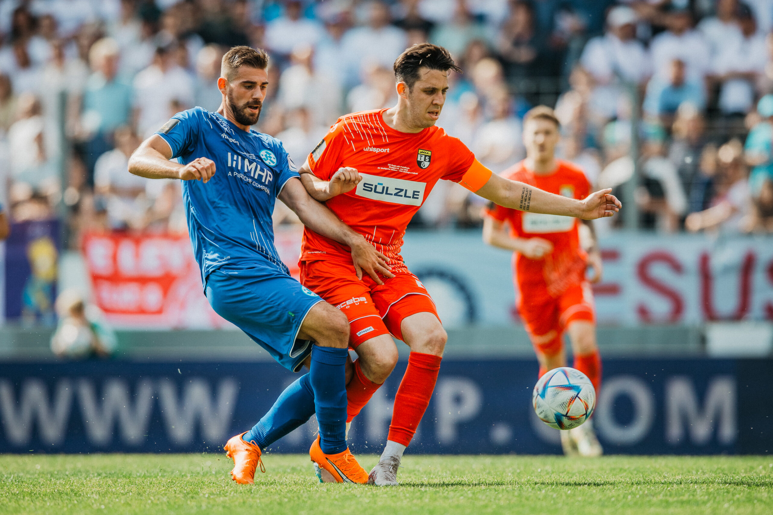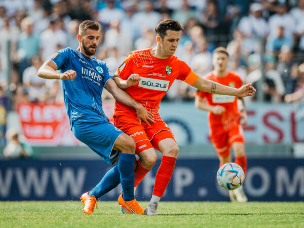 Fortan flachte die Partie etwas ab, was der Stimmung im ältesten Stadion Deutschland keinen Abbruch tat. Während die Kickers mehr Spielanteile hatten, verbuchte die TSG die beste Chance zur Führung: Moritz Kuhn stürmte über den rechten Flügel in Richtung Kickers-Tor, lupfte den Ball frech über Ramon Castellucci, scheiterte aber am Pfosten. Auch nach der Pause lebte das Spiel nicht von spektakulären Spielszenen, sondern von seiner Spannung und Intensität. Immer wieder gab es hitzige Momente, die Bergmann mit seinem Team jedoch souverän abarbeitete. „Wenn ich mich nach dem Spiel nicht über den Schiedsrichter beschwere, ist das ein gutes Zeichen“, meinte Kickers-Trainer Mustafa Ünal nach dem Spiel mit einem Augenzwinkern.