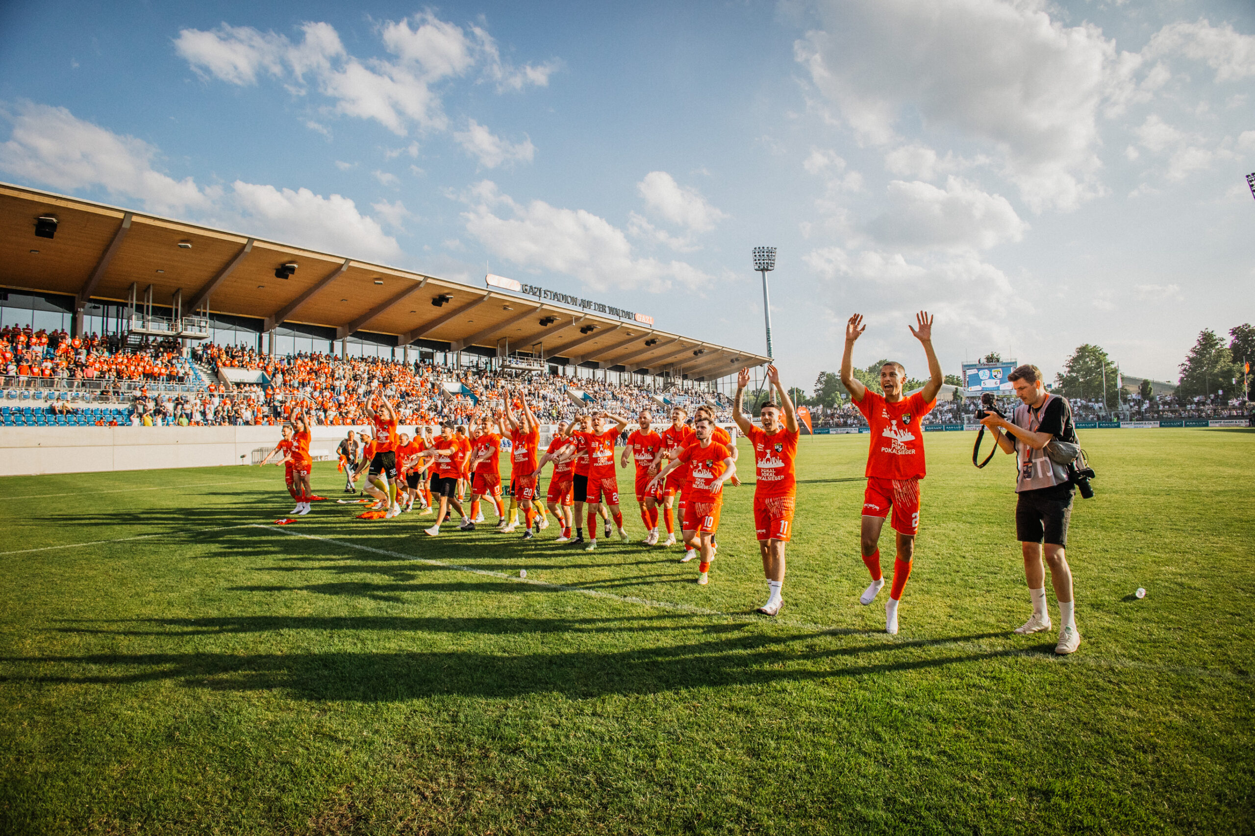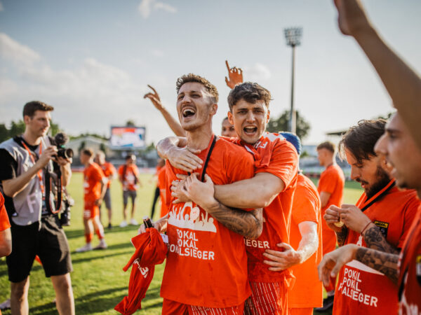 Was für ein Drama: Im zweiten Jahr in Folge entschied das Elfmeterschießen im Finale um den DB Regio-wfv-Pokal. Nach 120 Spielminuten stand es zwischen den Stuttgarter Kickers und der TSG Balingen Fußball 1:1-Unentschieden. Vom Punkt aus bewahrte der Regionalligist dann im Hexenkessel unter dem Stuttgarter Fernsehturm die Nerven und gewann mit 6:5. TSG-Keeper Marcel Binanzer parierte den halbhohen Schuss von David Kammerbauer, der als dritter Schütze angetreten war. Weil alle Balinger Schützen trafen, brach anschließend eine rote Jubelwelle über das GAZi-Stadion herein. Herzlichen Glückwunsch an die Eyachstädter zum ersten Triumph im württembergischen Verbandspokal.