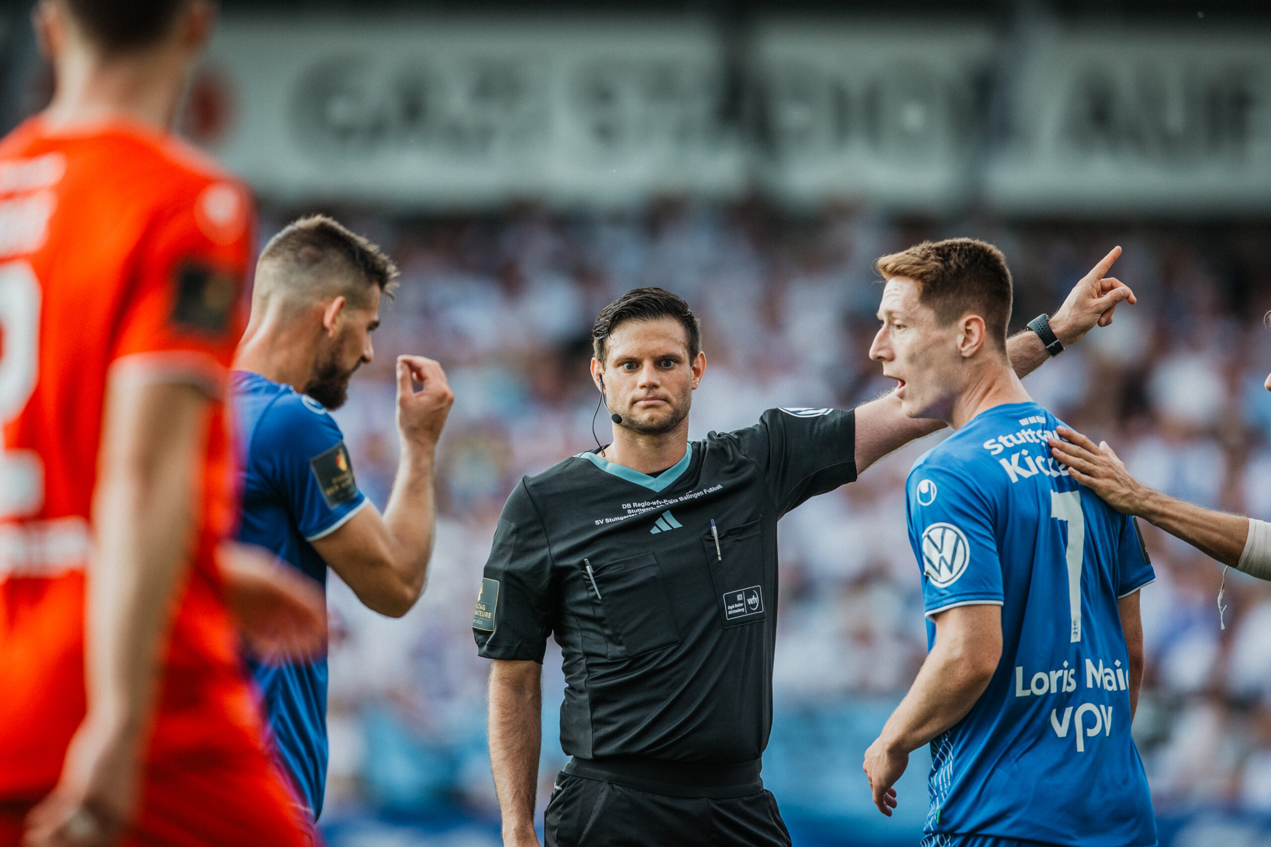 Manuel Bergmann, Schiedsrichter: „Es war ein schönes Gefühl, dieses Spiel zu pfeifen. Das war die größte Kulisse, die ich als Schiedsrichter bisher hatte. Es ging gleich kribbelig los mit der Gelben Karte in der zweiten Minute. Danach war es aber etwas ruhiger, das tat dem Spiel gut. Im Endeffekt war es ein intensives, aber faires Spiel.“ Zum Jahr der Schiedsrichter: „Ich finde das Projekt richtig gut. In der Oberliga oder Regionalliga kommt immer ein Schiedsrichter. Viel wichtiger ist es, die Wertschätzung an der Basis zu steigern. Respekt für alle, die jahrelang in den unteren Ligen pfeifen.“