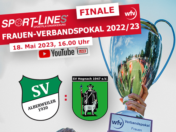 Die Favoritenrolle ist klar, doch es wäre nicht das erste Mal, dass der SV Alberweiler II im diesjährigen Verbandspokal-Wettbewerb überrascht. Wir übertragen das Finale im Sport-Lines wfv-Pokal der Frauen live auf unserem YouTube-Kanal! Geleitet wird die Begegnung von Schiedsrichterin Theresa Hug, die von Simone Hoffmann und Katharina Heilig unterstützt wird. Anpfiff ist um 16 Uhr. Zum Spiel auf FUSSBALL.DE.