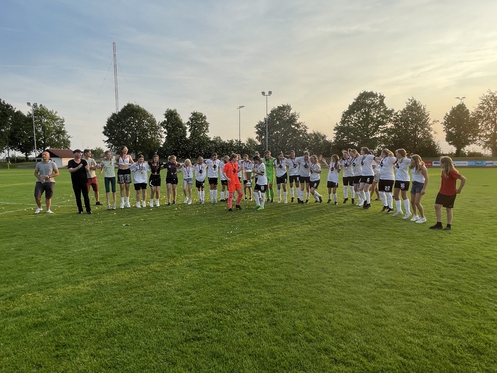 C-Juniorinnen des SV Jungingen jubeln bei der Rückkehr des Verbandspokals