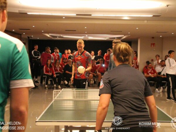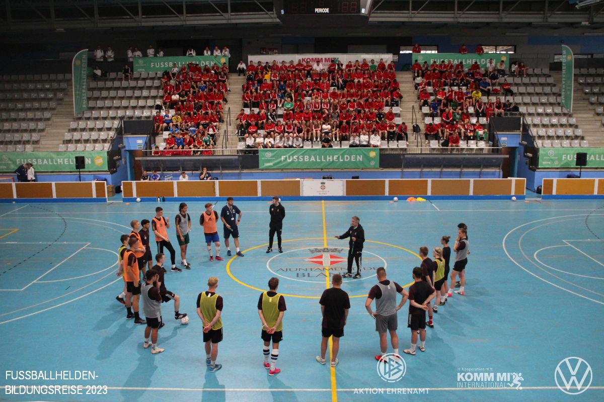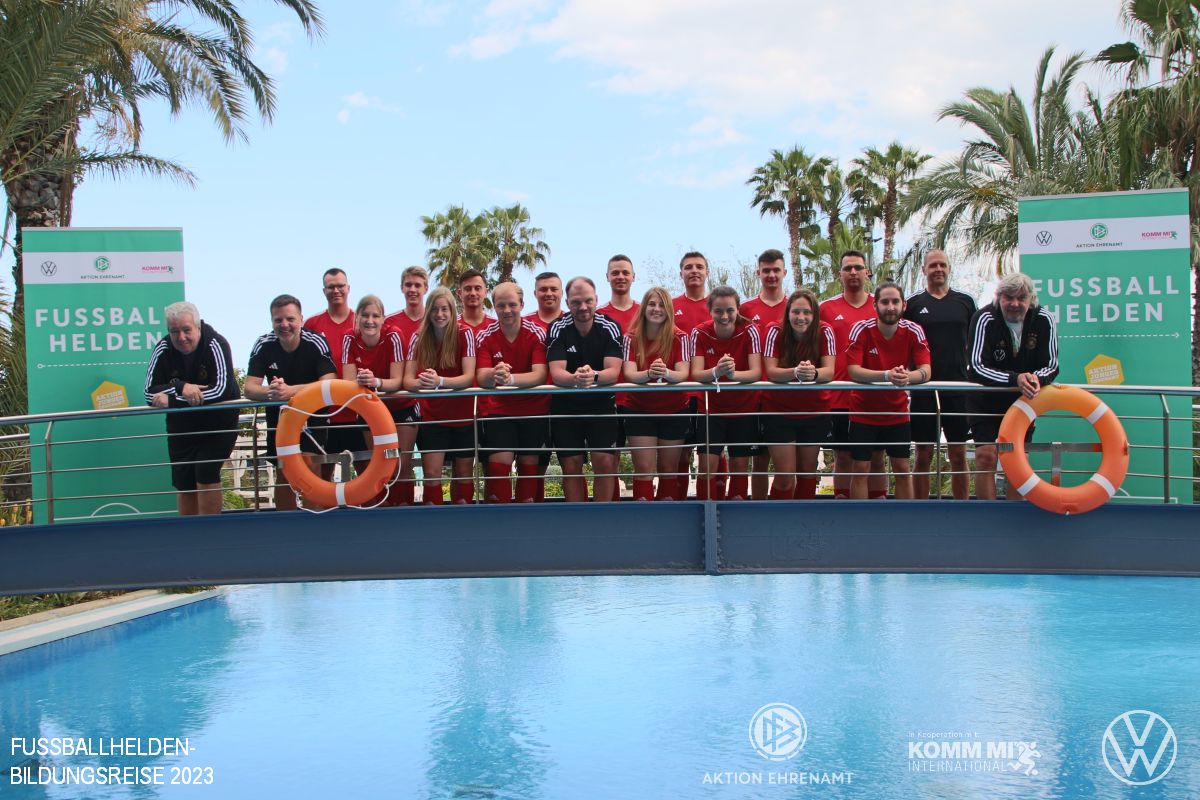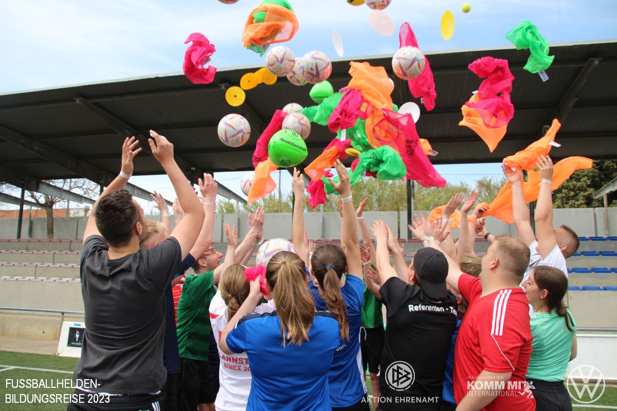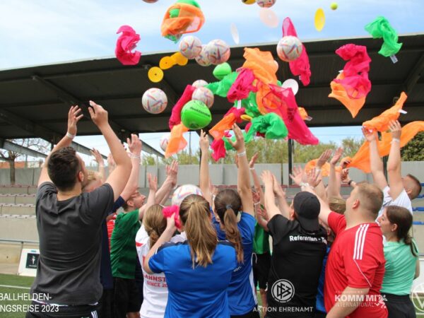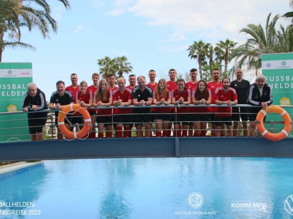 Im Rahmen der diesjährigen Fußballhelden-Bildungsreise wurden rund 250 junge Jugendfußballtrainer*innen und Jugendleiter*innen im spanischen Santa Susanna ausgezeichnet. Zudem waren im offiziellen „Jahr der Schiris“ junge Schiedsrichter*innen vertreten. Die Veranstaltung ist Teil der DFB-Aktion „Junges Ehrenamt“ und versteht sich als Dankeschön für das bisherige Engagement sowie als Motivation für weitere Tätigkeiten im Verein. Der Fortbildungsaspekt vor Ort spielt eine zentrale Rolle, die „Fußballhelden-Bildungsreise“ wird bereits seit 2015 vom DFB und Kooperationspartner KOMM MIT umgesetzt.