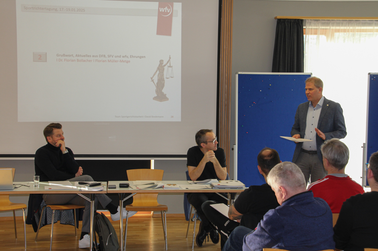 Weiter wurde darüber berichtet, dass sich die Fallzahlen bei den Aktiven im Vergleich zur Vorsaison kaum veränderten, jedoch auch in der zurückliegenden Saison steigende Fallzahlen im Juniorenbereich von 3,5 % vorlagen. Mit insgesamt 8098 Fällen ist die Zahl der Urteile weiter ansteigend. Inhaltlich setzen sich die Teilnehmer mit den Impulsvorträgen von Simon Letsche (Beisitzer des wfv-Vorstandes für besondere Aufgaben – Sportpolitik, Compliance und Integrität), Florian Müller-Metge sowie Dr. Joachim Müller (stellv. Vorsitzender des wfv-Verbandsgerichts) auseinander.