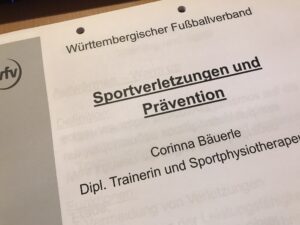 Sportverletzungen und Prävention war bei einer vom Fußballbezirk Schwarzwald angebotene Kurzschulung des WFV. Im Sportheim des SV Horgen konnte Schulungsleiter Georg Müller (Dunningen) 19 interessierte Teilnehmer begrüßen, leider gab es sechs kurzfristige Abmeldungen, die nicht neu vergeben werden konnten. Sehr erfreut zeigte sich Georg Müller, dass die Referentin Corinna Bäuerle (Dipl. Trainerin und Sportphysiotherapeutin) aus Backnang den Weg nach Horgen fand. Dieses neue Schulungsprogramm, das seit einiger Zeit schon geplant war, konnte nun dank des Schulungsleiters im Bezirk angeboten werden. Alle waren sehr gespannt, wie diese Schulung aussieht und wie der Inhalt dargeboten wird.