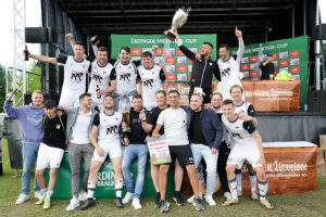 Bei den Männern jubelte am Ende – überraschenderweise – der FC Hüttisheim, der als Kreisliga B-Meister den vermeintlichen Favoriten, den Verbandsliga-Meister SV Fellbach, mit einem 2:0 im Finale besiegte. Die beiden Erstplatzierten dürfen sich auf ein professionelles Trainingslager freuen! Platz zwei und damit der SV Fellbach durfte sich über einen Beer-Pong Tisch inklusive eines Jahresabos von Erdinger (80 Kästen) freuen, für die Drittplatzierten vom VfL Pfullingen 2 gab es wie bei den Frauen adidas Hoodies im ERDINGER Look.