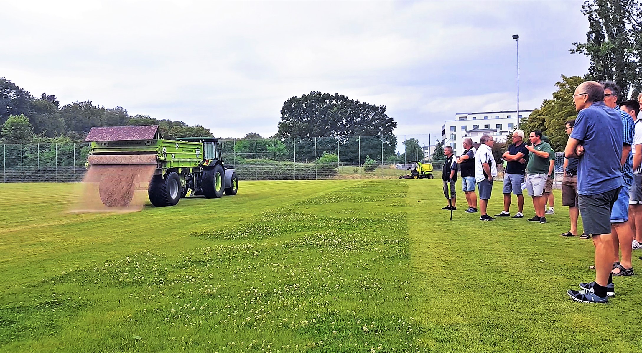 Emsiger Betrieb in Korntal: Grüne Schlepper mit Sandstreuern und anderen Anbaugeräten fuhren am Freitagnachmittag unter den Augen der Teilnehmenden des Platzwart-Seminars gleichmäßig ihre Bahnen.