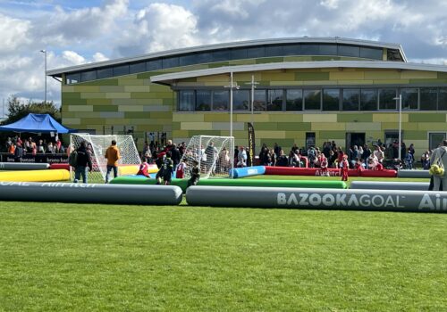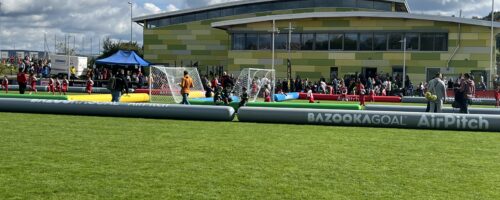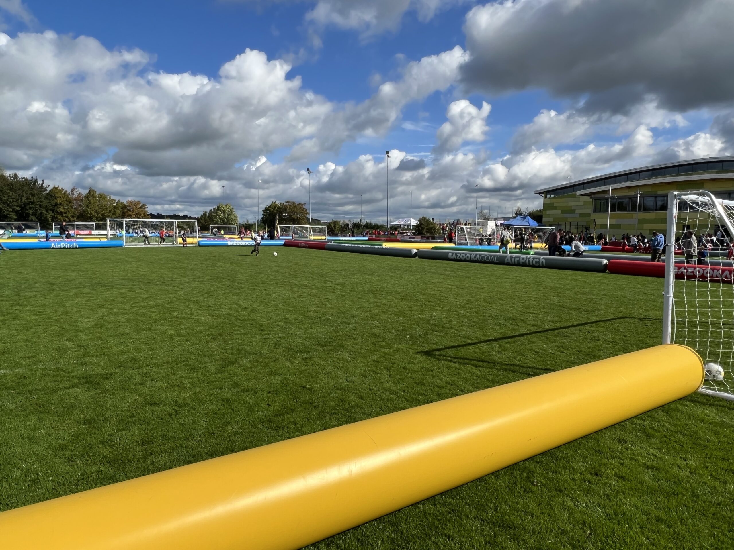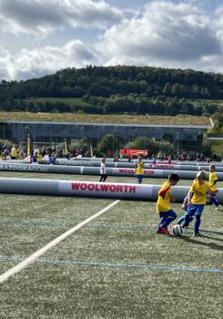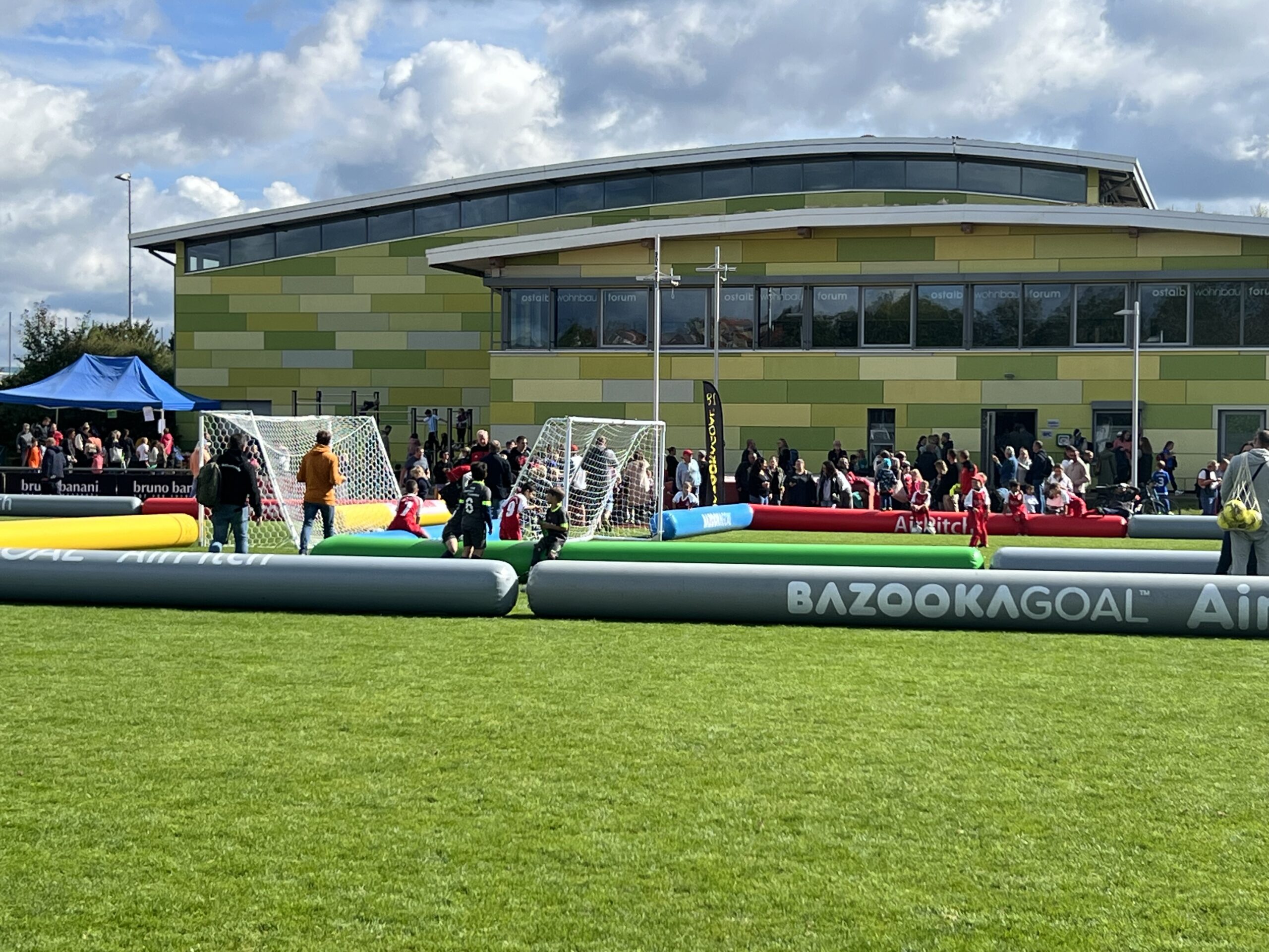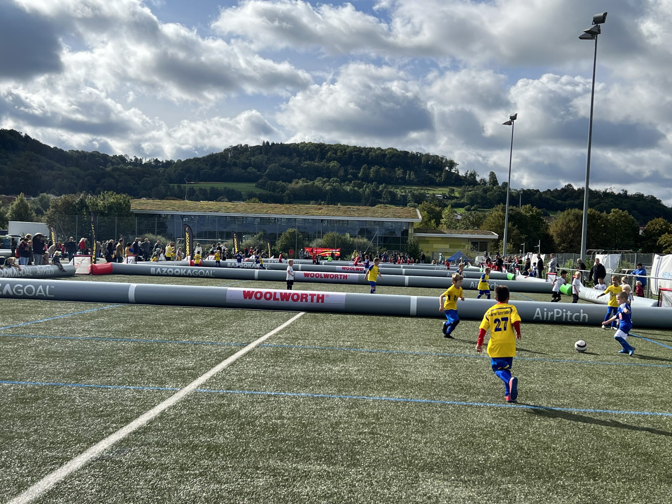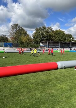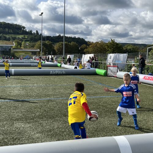 Für maximalen Spielspaß sorgen luftgefüllte Rundumbanden, sogenannte Airpitches, die von wfv-Partner Bazookagoal bereitgestellt werden. So bleibt der Ball immer im Feld und die Spielzeit für unsere Nachwuchskicker*innen wird maximiert. wfv-Kinderfußballexperte Alexander Stoppel meint: „Das verstärkt den Effekt unserer kleinen Spielformen. Durch die vielen Ballkontakte, Aktionen und Torabschlüsse lernen unsere Kinder besonders viel – und haben vor allem jede Menge Spaß.“