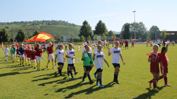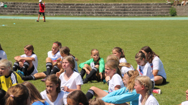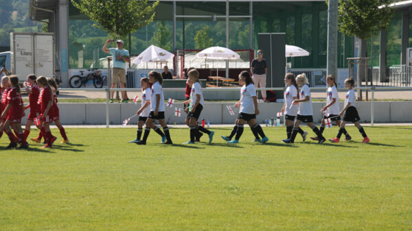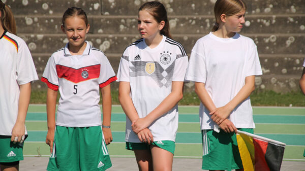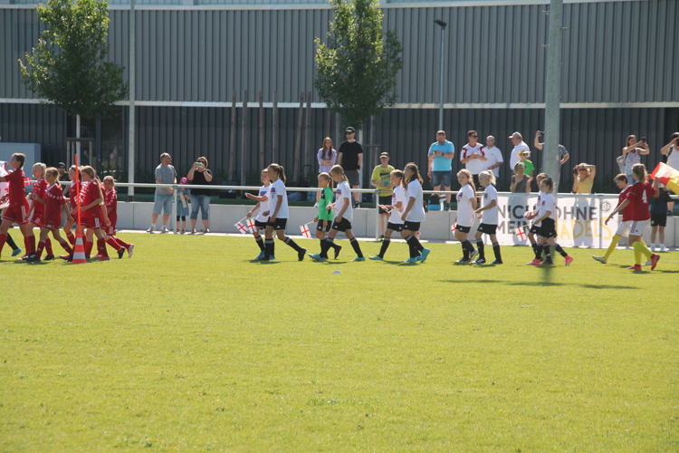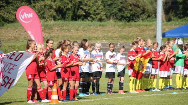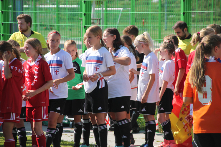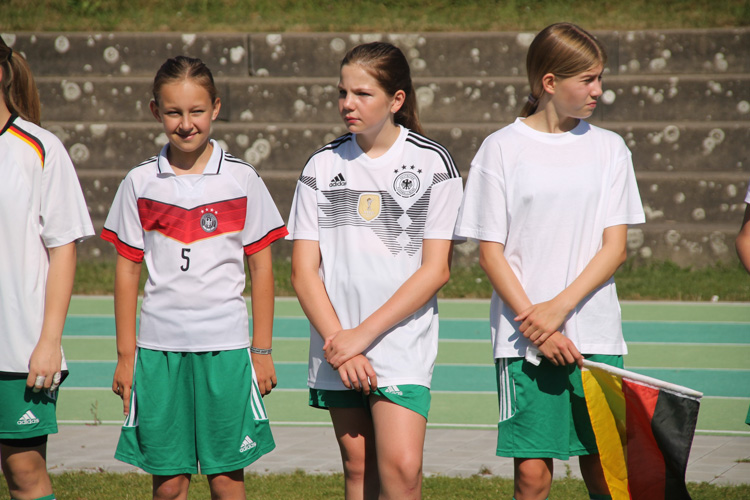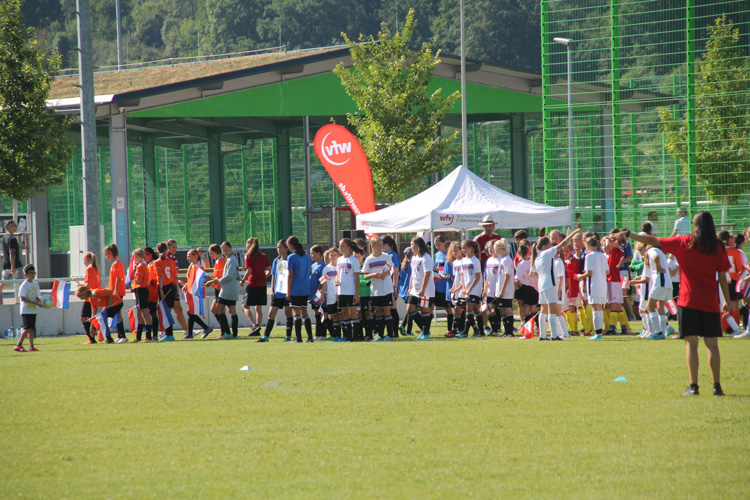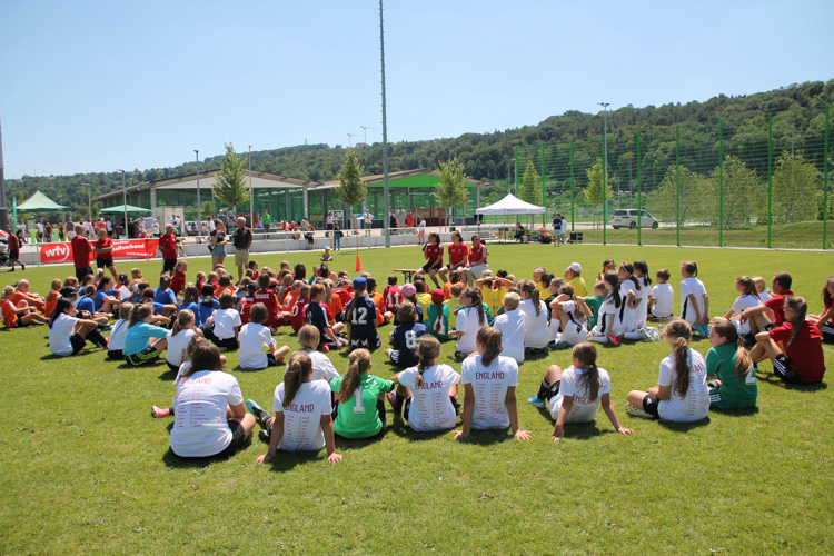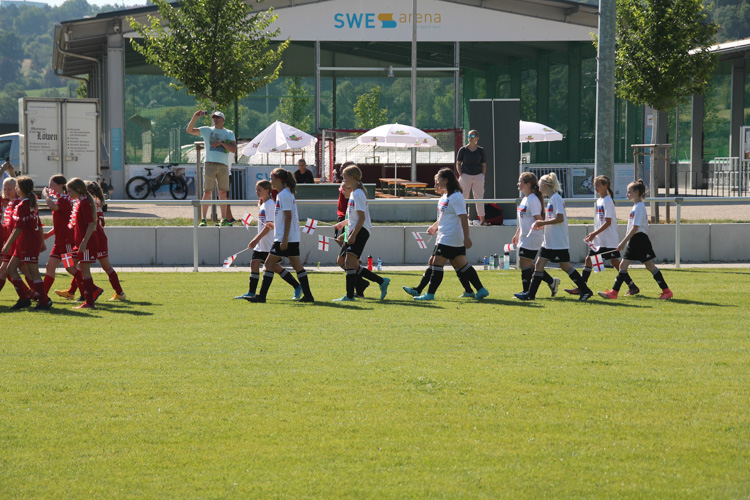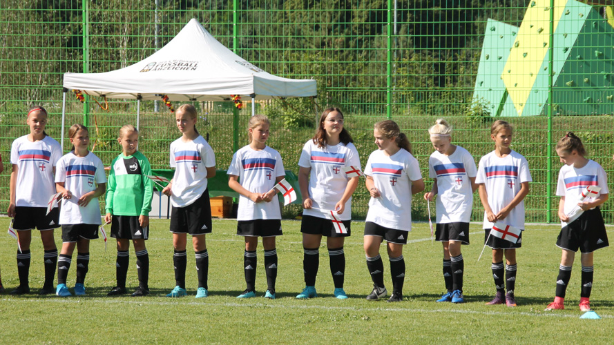 Am gestrigen Samstag nahm unsere WFV Mädchen Talentfördergruppe bei vom WFV organisierten Mini EM für Talentfördergruppen am Sportpark in Esslingen teil. Angelehnt an die gerade laufende EM der Frauen in England repräsentierten die 12 TFG´s entsprechend ein Land. Die TFG Schwarzwald/Zollern durfte dabei den Gastgeber England vertreten. In der Gruppe B spielten Sie dabei gegen Italien (1:2), Island (1:0), Dänemark (2:0), Spanien (3:1) und Norwegen (0:0). Dies reichte mit 10 Punkten hinter Norwegen (11 Pkt.) auf Platz zwei und stand somit im Halbfinale. Hier wartete mit Frankreich (13 Pkt. In ihrer Gruppe A) ein harter Brocken. Das Spiel ging mit 1:3 verloren. Im Spiel um Platz drei war dann die Luft etwas raus, Sie mussten sich gegen Norwegen mit 0:2 geschlagen geben. Dennoch waren die Coaches mit der Leistung und Platz 4 sehr zufrieden.