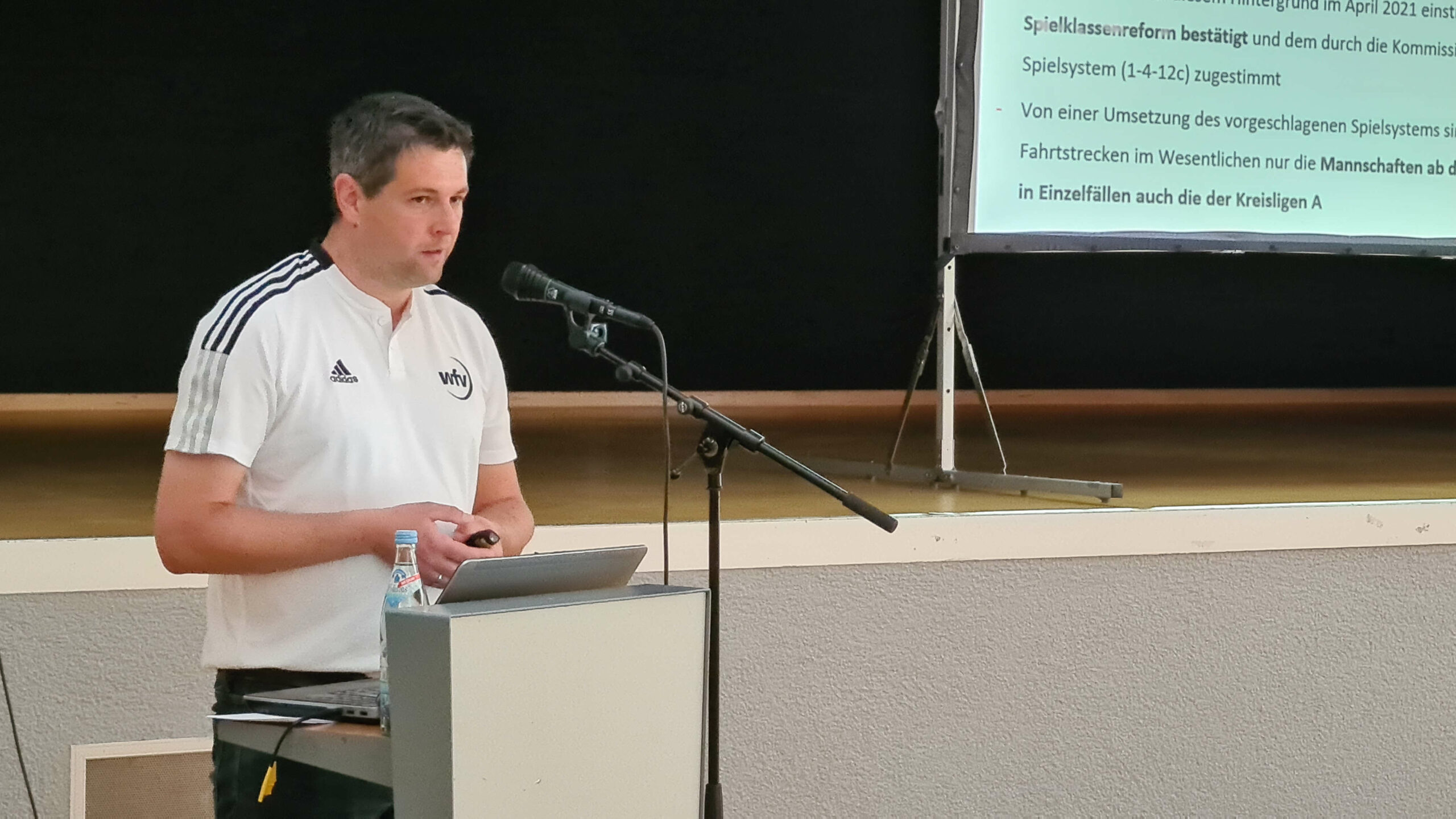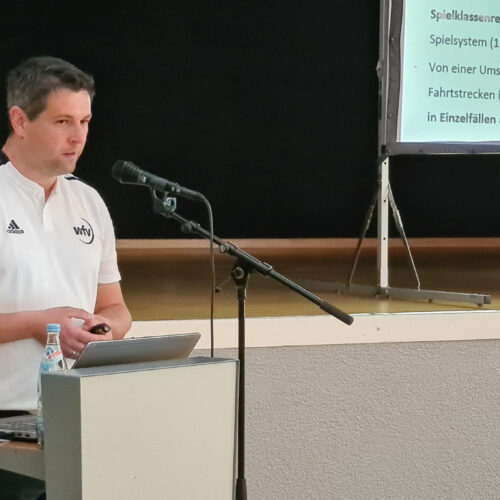 Bezirksspielleiter Matthias Harzer führte durch die Infoveranstaltung. Mit einer Zeitabfolge veranschaulichte er unter anderem, welche Gründe es hat, dass am 25. Mai auf dem außerordentlichen Verbandstag über die Beschlussanträge zur Umsetzung der Reformen abgestimmt wird.