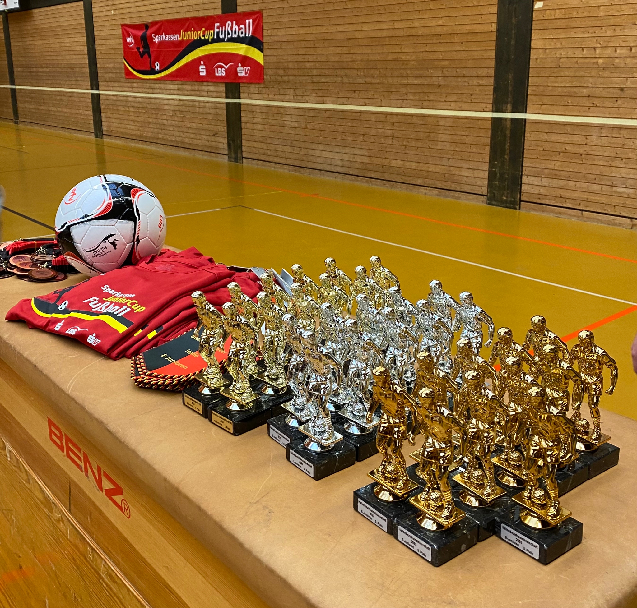 Alle Teilnehmerinnen und Teilnehmer der Bezirks-Endrundenturniere erhielten einen hochwertigen Sportbeutel im Sparkassen JuniorCup-Design. Außerdem bekommen alle Bezirks-Hallenmeisterinnen und -meister ein Sparkassen JuniorCup-Trikot von adidas.