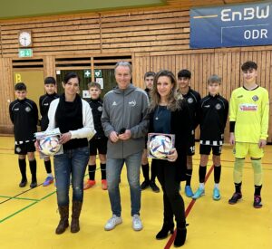 In der gut gefüllten Herwartsteinhalle hielt es keinen auf den Sitzen, unter tosendem Applaus und Tränen nahmen Nicole Kugler und Bianca Lang zwei adidas-Spielbälle für ihre Nachwuchskicker entgegen.