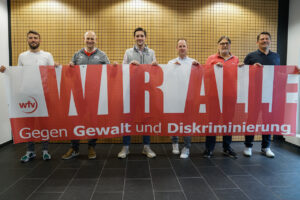 Mit der Neubesetzung der Kommission startet gleichzeitig auch eine Banner-Aktion, die aus der zurückliegenden Kommissionsarbeit entstand: Alle zwölf wfv-Bezirke erhalten ein Banner mit der Aufschrift „WIR ALLE. Gegen Gewalt und Diskriminierung“, welches Vereinen auf Anfrage zur Verfügung gestellt werden soll.