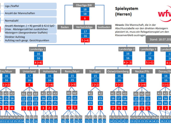 Informationen zu den Wettbewerben, die Aufteilung der Ligen in der sogenannten Spielsystem-Spinne, den Rahmenterminkalender sowie zu gegebener Zeit die Relegationstermine finden Sie auf den folgenden Seiten.